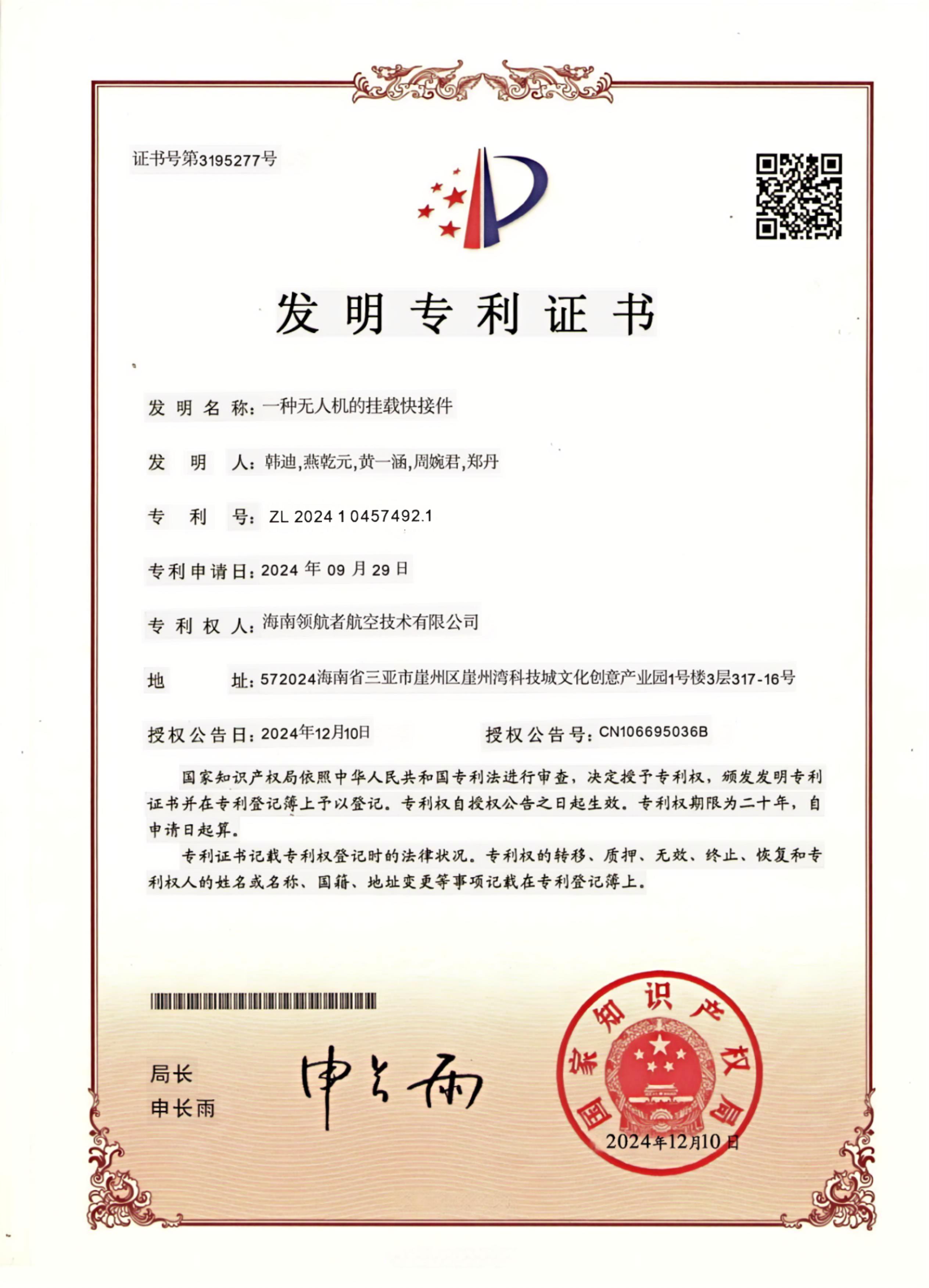 Hainan Linghang Aviation Technology Co., LTD. -Certificate